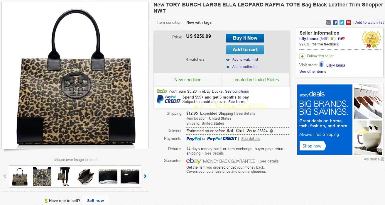 代购网址:http://www.ebay.com/itm/New-TORY-BURCH-LARGE-ELLA-LEOPARD-RAFFIA-TOTE-Bag-Black-Leather-Trim-Shopper-NWT-/390953763772?pt=US_CSA_WH_Handbags&hash=item5b06a903bc